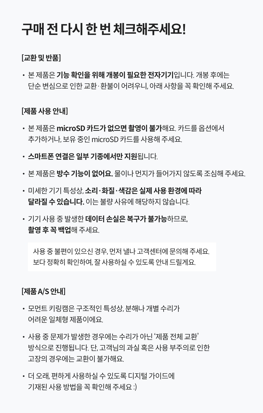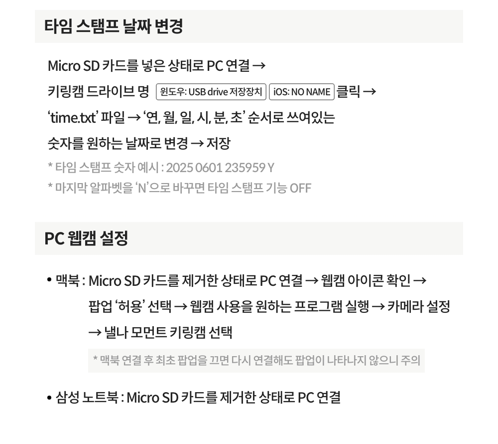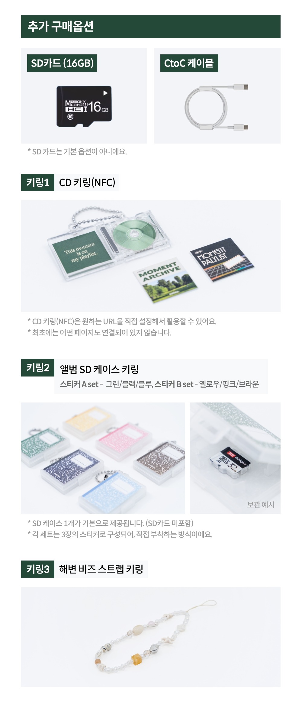 - SD카드는 미포함입니다. (SD카드가 필요한 분들은 옵션 추가 해주세요!)