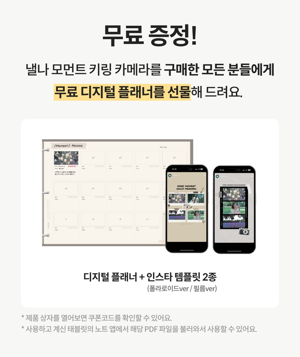 - 함께 구매한 다른 낼나 제품들은 낼나 모먼트 키링캠과 함께 배송돼요.